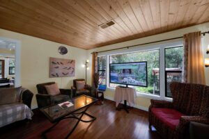 All eleven of our luxurious guest rooms, welcome you to an unforgettable experience.  Rest, relax and let your cares melt away.  Enjoy all the amenities and comforts of luxury hotel in a woodsy setting.  Each room feels as if it has been prepared with you in mind.  The memory of a stay at the Inn at Shasta Lake promises to last a lifetime.  Each room at the Inn at Shasta Lake is individually designed and styled, offering a unique experience for each guest.  All rooms have wood or bamboo floors.  The rooms are named after flora and fauna that we often see at the Inn.Our rooms are spread out on over sixty acres within the Shasta Trinity National Forest.  The Oak Building has four rooms located on two floors. Many rooms overlook the formal garden with inviting gazebo.  Directly across the lawn is the Pine Building.  The Pine building has five suites located on two floors.  The Pine building also has the common rooms: living room, dining area, and deck.  And in addition we have two cottages. The Acorn Cottage offers privacy, with it’s own driveway, located down a staircase from the Pine Building. The Acorn Cottage is petite but features a private location with a large front deck.   Spa tub and shower.  Queen size bed. Gas fireplace.  Compact microwave and refrigerator.   Pet friendly. The Pinecone Treehouse sits up on stilts set in the majestic pines.  The treehouse offers a private balcony.  King size bed and separate sitting area.  Spa tub and walk in shower.  Two sided gas fireplace. Compact microwave and refrigerator. Pet friendly.