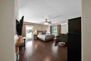 All eleven of our luxurious guest rooms, welcome you to an unforgettable experience.  Rest, relax and let your cares melt away.  Enjoy all the amenities and comforts of luxury hotel in a woodsy setting.  Each room feels as if it has been prepared with you in mind.  The memory of a stay at the Inn at Shasta Lake promises to last a lifetime.  Each room at the Inn at Shasta Lake is individually designed and styled, offering a unique experience for each guest.  All rooms have wood or bamboo floors.  The rooms are named after flora and fauna that we often see at the Inn.Our rooms are spread out on over sixty acres within the Shasta Trinity National Forest.  The Oak Building has four rooms located on two floors. Many rooms overlook the formal garden with inviting gazebo.  Directly across the lawn is the Pine Building.  The Pine building has five suites located on two floors.  The Pine building also has the common rooms: living room, dining area, and deck.  And in addition we have two cottages. The Acorn Cottage offers privacy, with it’s own driveway, located down a staircase from the Pine Building. The Acorn Cottage is petite but features a private location with a large front deck.   Spa tub and shower.  Queen size bed. Gas fireplace.  Compact microwave and refrigerator.   Pet friendly. The Pinecone Treehouse sits up on stilts set in the majestic pines.  The treehouse offers a private balcony.  King size bed and separate sitting area.  Spa tub and walk in shower.  Two sided gas fireplace. Compact microwave and refrigerator. Pet friendly.