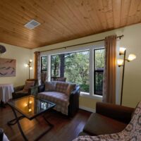 The Acorn Cottage offers privacy, with it’s own driveway, located down a staircase from the Pine Building. The Acorn Cottage is petite but features a private location with a large front deck. Spa tub and shower. Queen size bed. Gas fireplace. Compact microwave and refrigerator. Pet friendly.